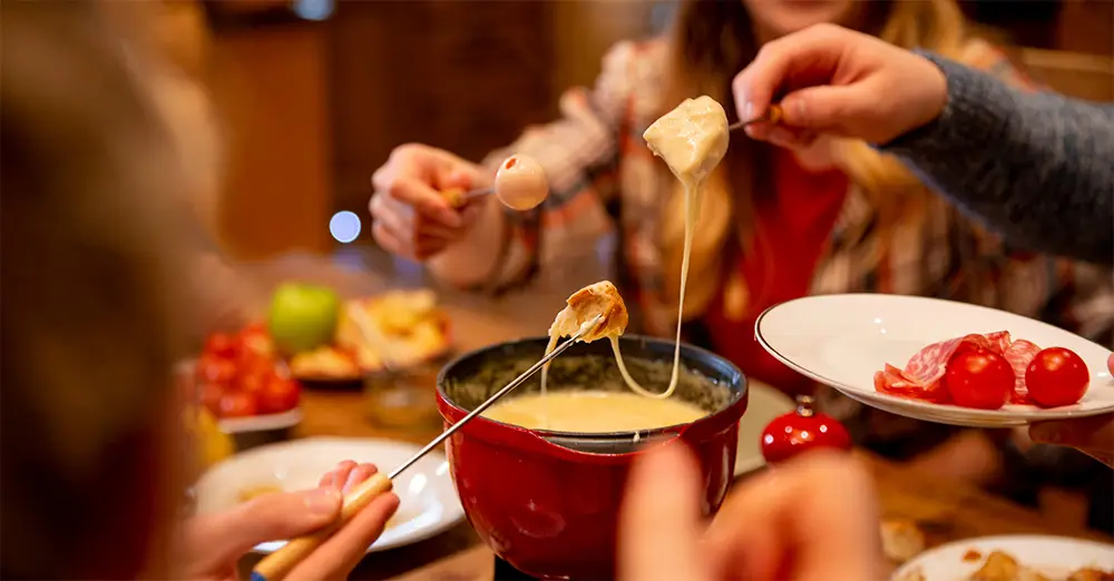 Acompanha todos os acompanhamentos do Fondue de Queijo e do Fondue de Chocolate.
